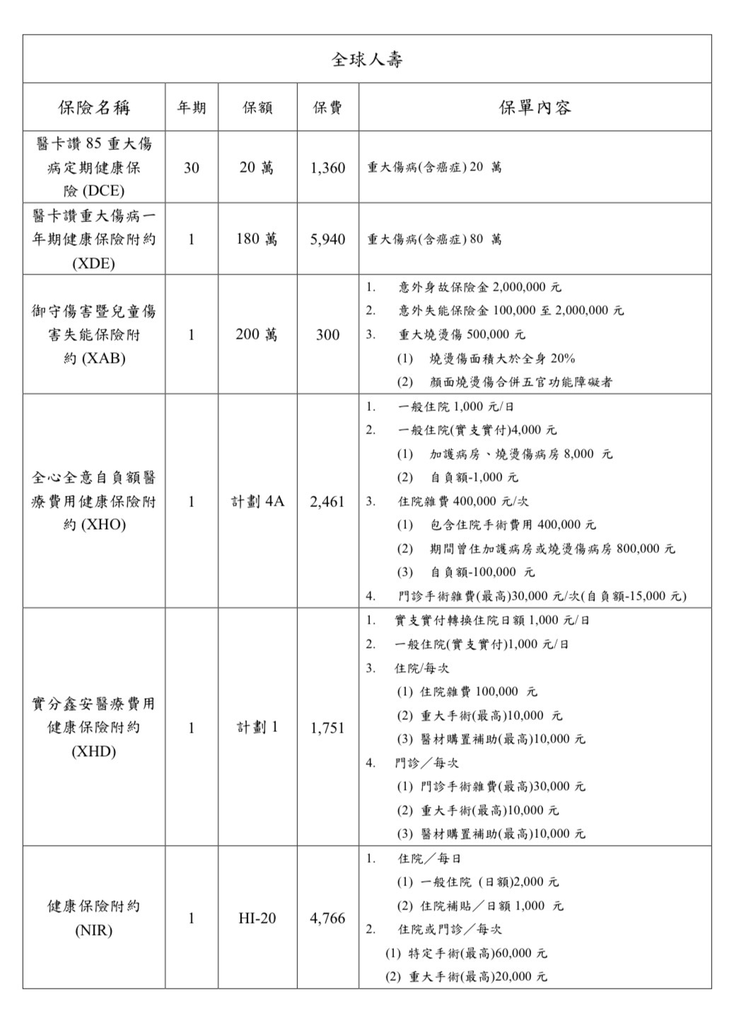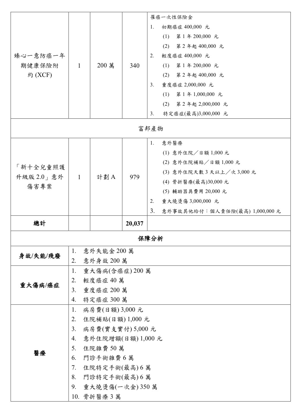 🆀原本是以富邦+全球規劃,後來參考論壇建議,改以全球為主,搭配新十全兒童。