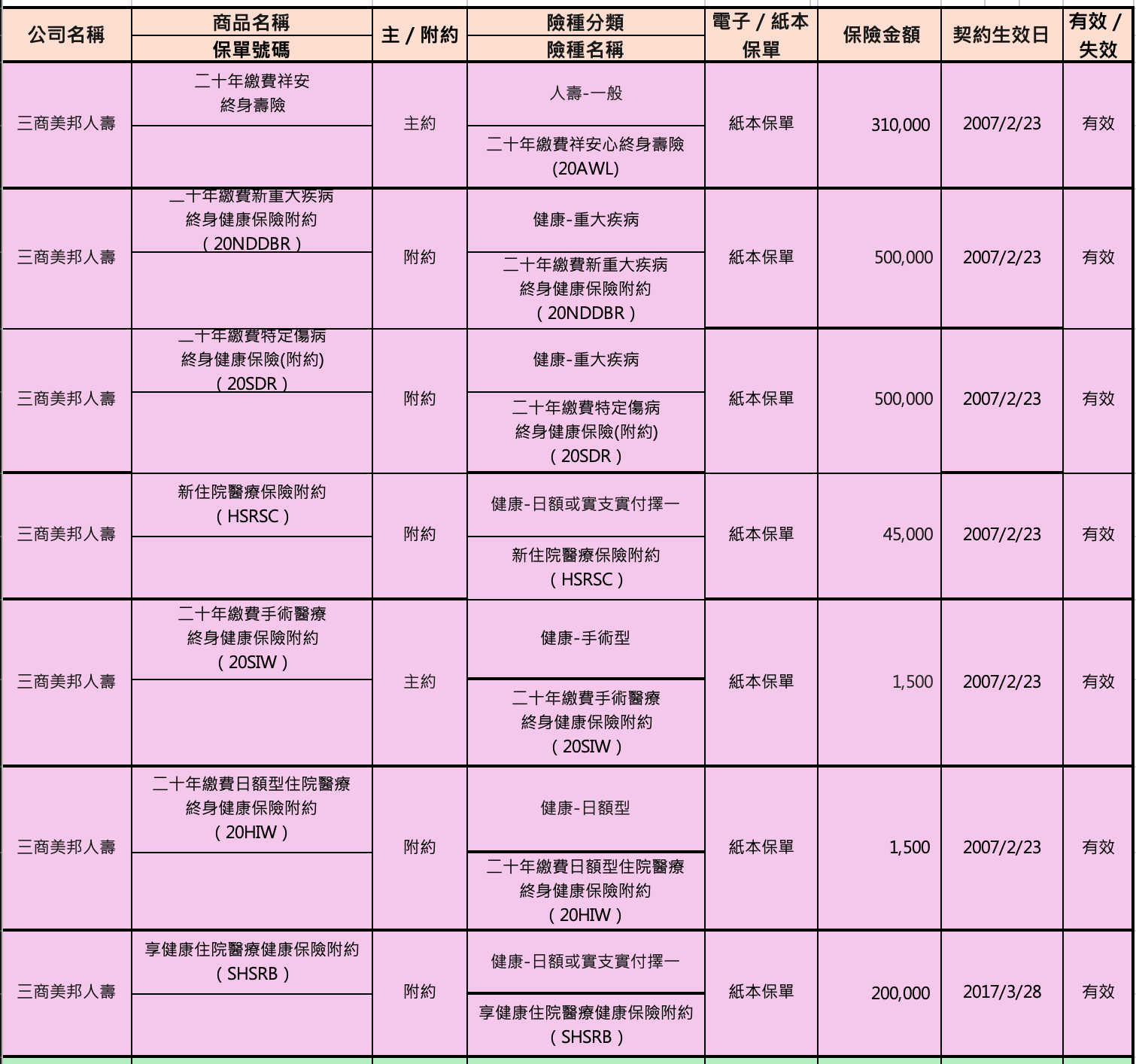 綜上所述,三商跟元大的舊保單請務必好好繳費保留,現在已經規劃不到相同條款跟費率的商品了