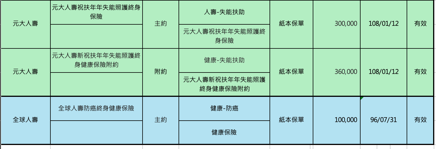 先恭喜您有規劃到失能險及終身險繳費期滿,請務必好好繳費保留,擁有基本的保障囉